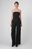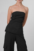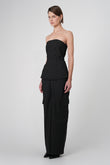 The Ayle Bustier boasts a lightweight faux wool fabric with a flared cut. Its strapless design and lining offer a sleek and secure fit, making it a perfect choice for any occasion.