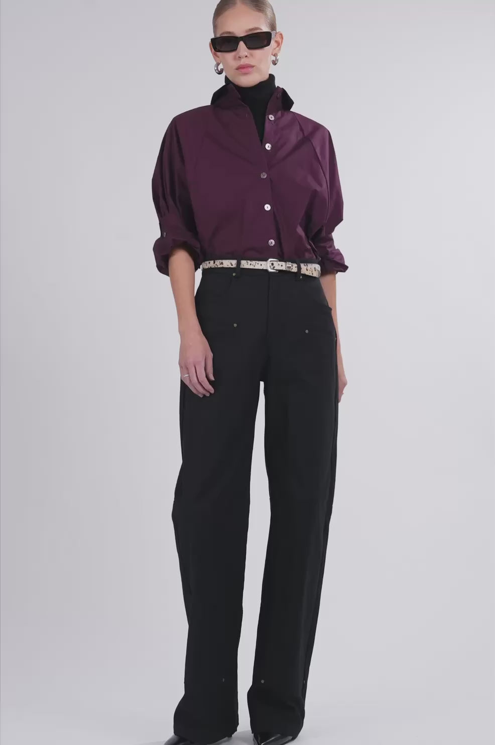 The Beck Poplin Shirt — Effortlessly crisp and endlessly versatile. Designed in structured cotton poplin, it features roll-up sleeves with button tabs, a snap-collar neckline, and a silhouette that feels both polished and easy. A timeless essential for every day.
