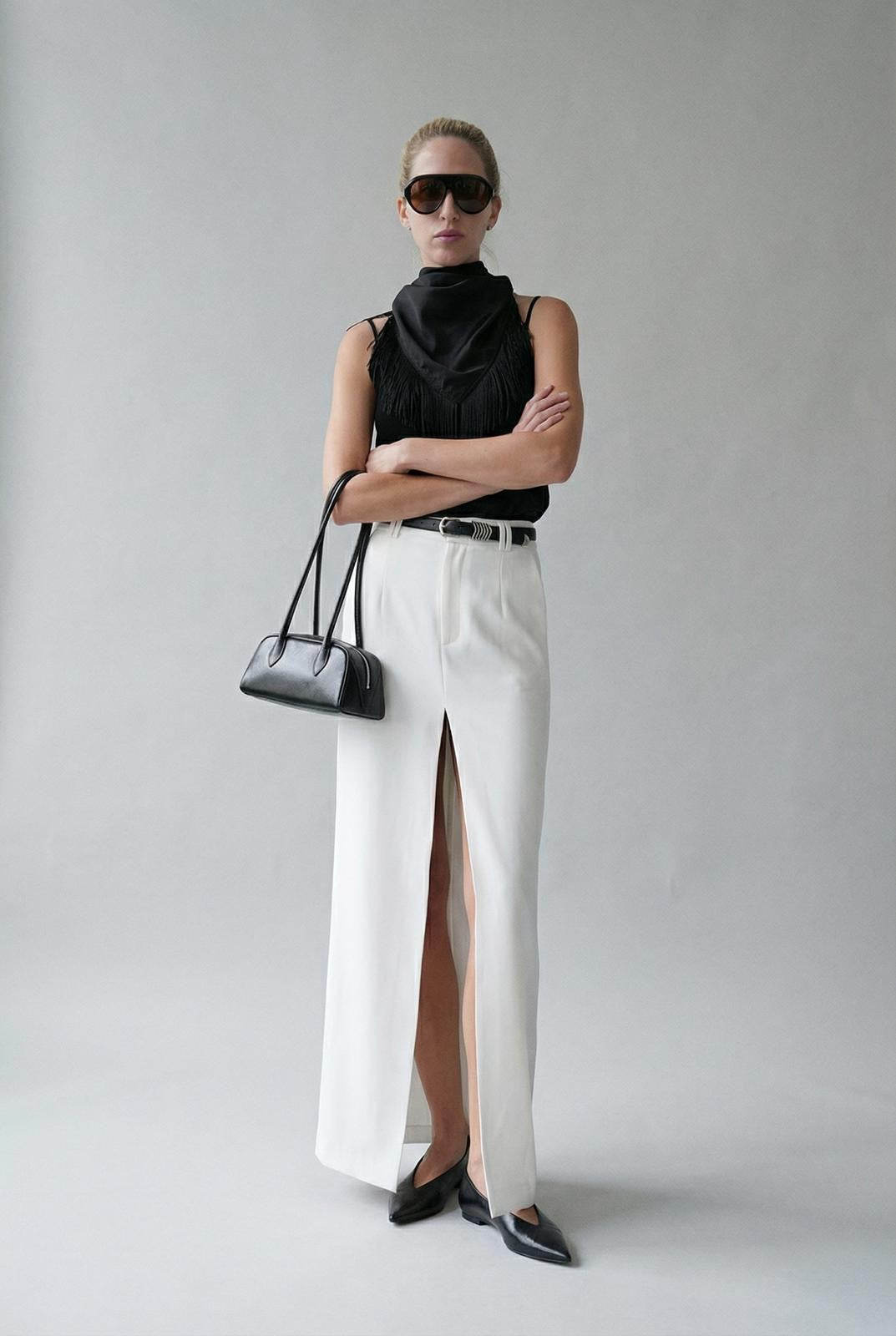 A silk scarf finished with delicate fringe detailing. Lightweight, fluid, and endlessly versatile—designed to elevate even the simplest look.
