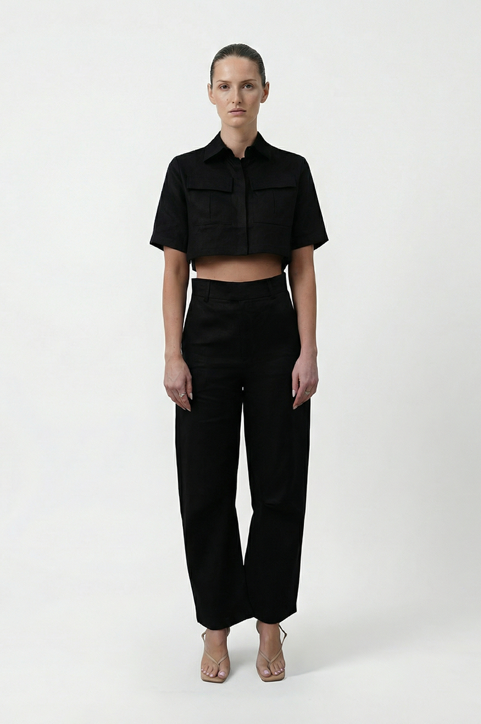 The Hania Trousers are cut from 100% linen in a sculptural horseshoe silhouette. Designed with a curved leg and side pockets, they bring ease and structure together for a refined, everyday statement.