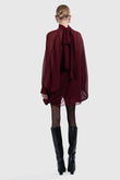 The Juliette Dress is sheer and airy with a high neckline and delicate back tie that frame its cape-like silhouette. Its fluid shape carries an effortless elegance — a piece that transforms with styling and moves with you.