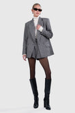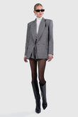 Solene Blazer - a study in relaxed tailoring, the Solene Blazer is cut from a gray herringbone fabric with a softly structured, slightly oversized fit. Finished with front buttons and classic lapels, it pairs effortlessly with the Laurette Shorts for a modern, understated set that moves seamlessly from day to night.