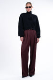 Sabrina Trousers are a high-rise trouser, crafted from a soft fabric with a fluid wide-leg silhouette and front pleats, these trousers will be the most timeless piece in your closet.