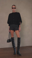 This Madeline Sweater Cape offers a sophisticated layering piece combining the warmth of a cardigan with the stylish silhouette of a cape. Designed with practical button closures, it provides both comfort and easy wearability, making it an essential addition for refined, versatile outerwear.
