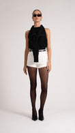 Add versatility and style to your wardrobe with our Wrapped Sweater. Wear it in two fashionable ways - as a halter neck with a unique cutout back, or tie the long sleeves in front for a chic look. Made from soft bouclé, this cozy sweater is the perfect transition piece for any closet.