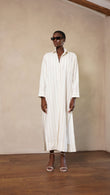Indulge in sophistication with the Leni Dress. Crafted with 100% cotton, this lengthy dress with button accents exudes an aura of refinement. Suitable for any occasion, be it relaxed or formal, the Leni Dress brings together fashion and luxury. Elevate your wardrobe with this timeless and multipurpose piece.