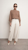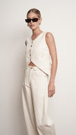 Elevate your wardrobe with our Leo Pant. Crafted from luxurious ivory denim, these pants feature elegant tan stitching for a sophisticated touch. Perfect for any occasion, these pants are a statement piece that exudes exclusivity and style.