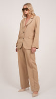 Enhance your professional wardrobe with Marcus Pants. These camel pants, adorned with white stripes, perfectly pair with the Phillip Blazer for a timeless and polished look. Expertly crafted with a focus on style and functionality, these pants offer a classic yet modern silhouette. Elevate your style game with Marcus Pants.