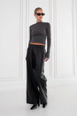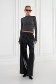 The Simone Pant — Crafted from sleek faux leather, these pants feature a flattering flared leg, zippered pockets, and an easy pull-on waistband. Equally polished dressed up or styled casually, they’re a versatile staple your wardrobe will always reach for.