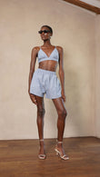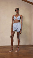 Introducing the Bria Bralette, made with 100% cotton for the perfect fusion of luxury and fashion. This versatile bralette can be worn on its own or paired with our Amelia Shirt for a sophisticated ensemble.
