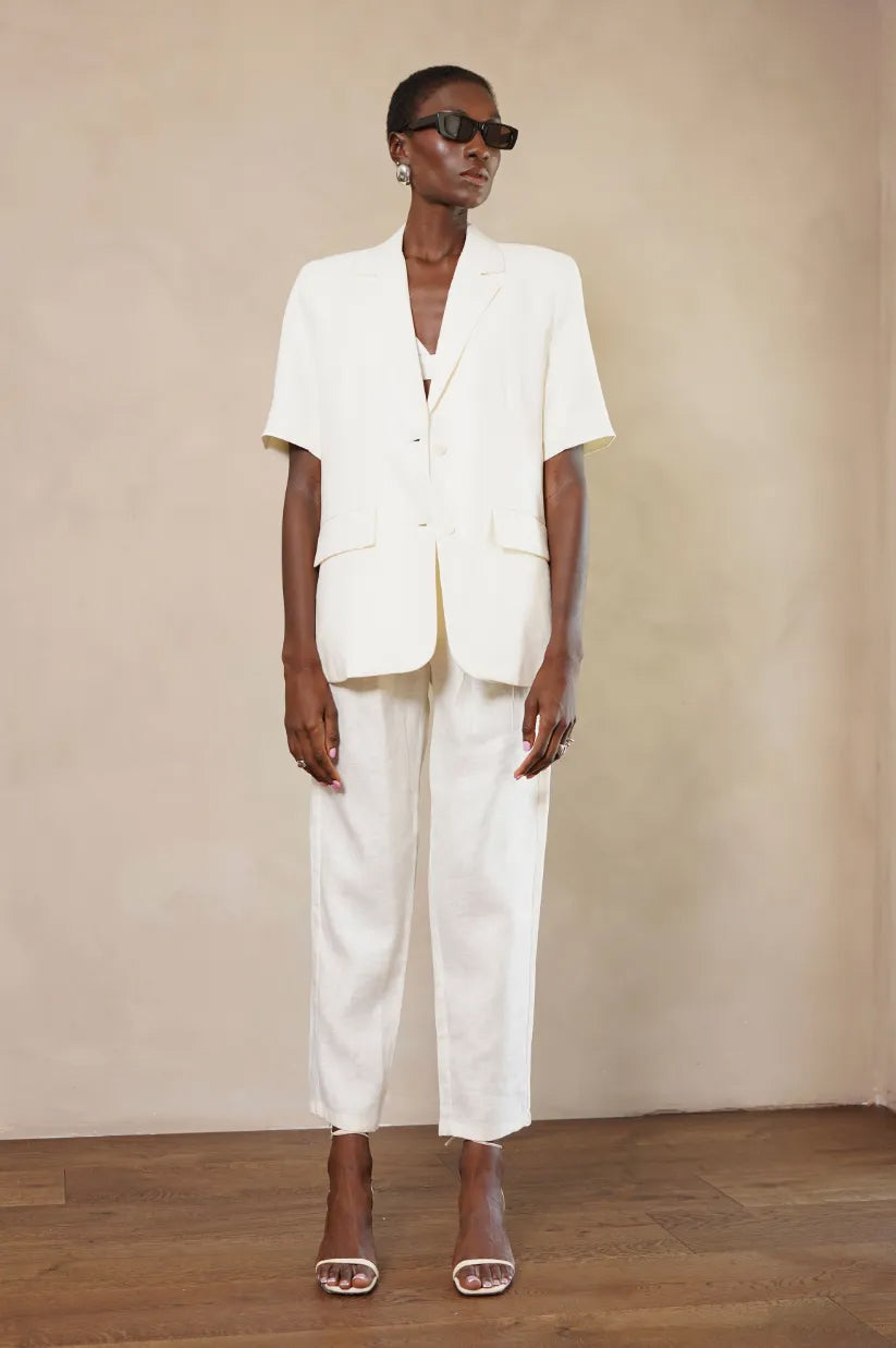 Experience the luxurious Dinah Trousers, crafted from premium 100% linen for a lightweight and elegant touch. Versatile and stylish, they can be dressed up with a blazer or worn casually for everyday wear. A staple piece for any sophisticated closet, featuring a clean and timeless design. Elevate your wardrobe now.
