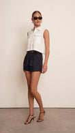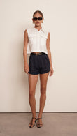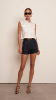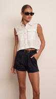 Introducing the Vale top, the perfect blend of style and comfort. Made of high-quality linen, this crop top features a sleeveless design and a classic button-down front. Complete your summer wardrobe with this versatile piece that offers both elegance and breathability.