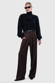 Sabrina Trousers are a high-rise trouser, crafted from a soft fabric with a fluid wide-leg silhouette and front pleats, these trousers will be the most timeless piece in your closet.