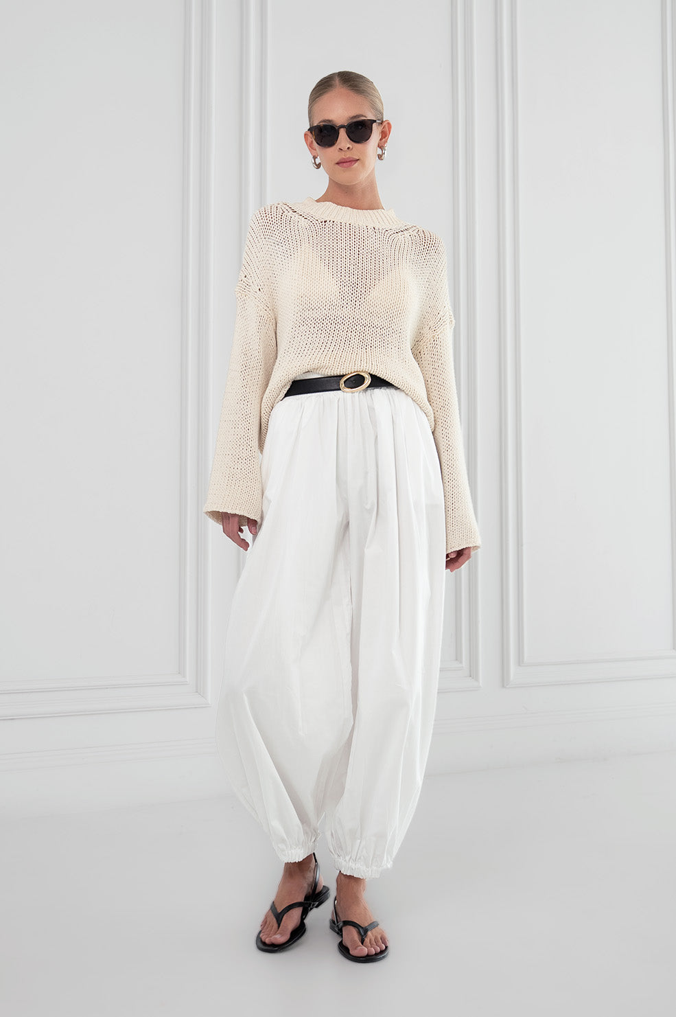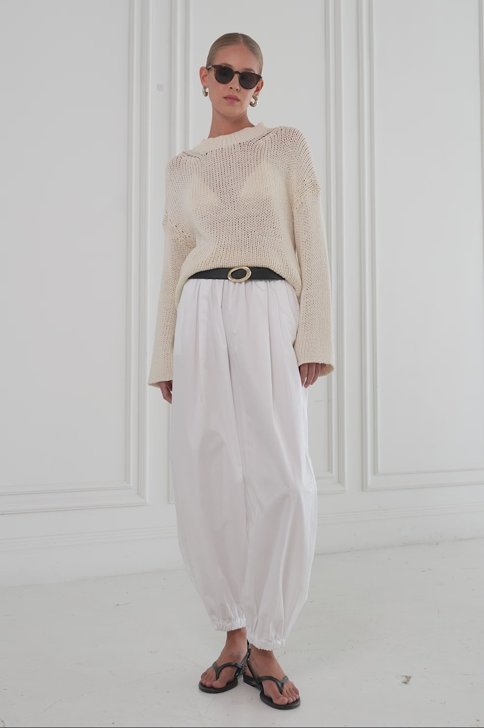The Bella Pants — crafted in 100% cotton with a wide-leg, draped balloon silhouette for elevated comfort. Designed with an easy elastic waistband and versatile everyday style, they’re the must-have pants of the season. Effortless, cool, and made for endless wear.