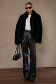 The Jacqueline Coat is crafted in faux fur with a front zipper and adjustable side loops to define the silhouette. A modern layer designed to transition seamlessly from day to night.