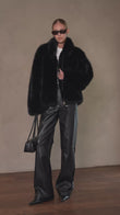 The Jacqueline Coat is crafted in faux fur with a front zipper and adjustable side loops to define the silhouette. A modern layer designed to transition seamlessly from day to night.