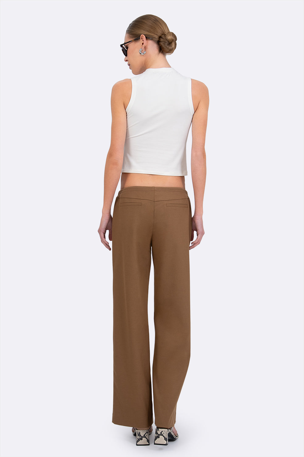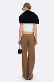 The Odin Trousers features a clean front zipper with clasp closure and an adjustable drawstring toggle for a custom fit. Designed without a traditional waistband for a smooth, streamlined silhouette. Easy, refined, and made to move with you — your new everyday pant.