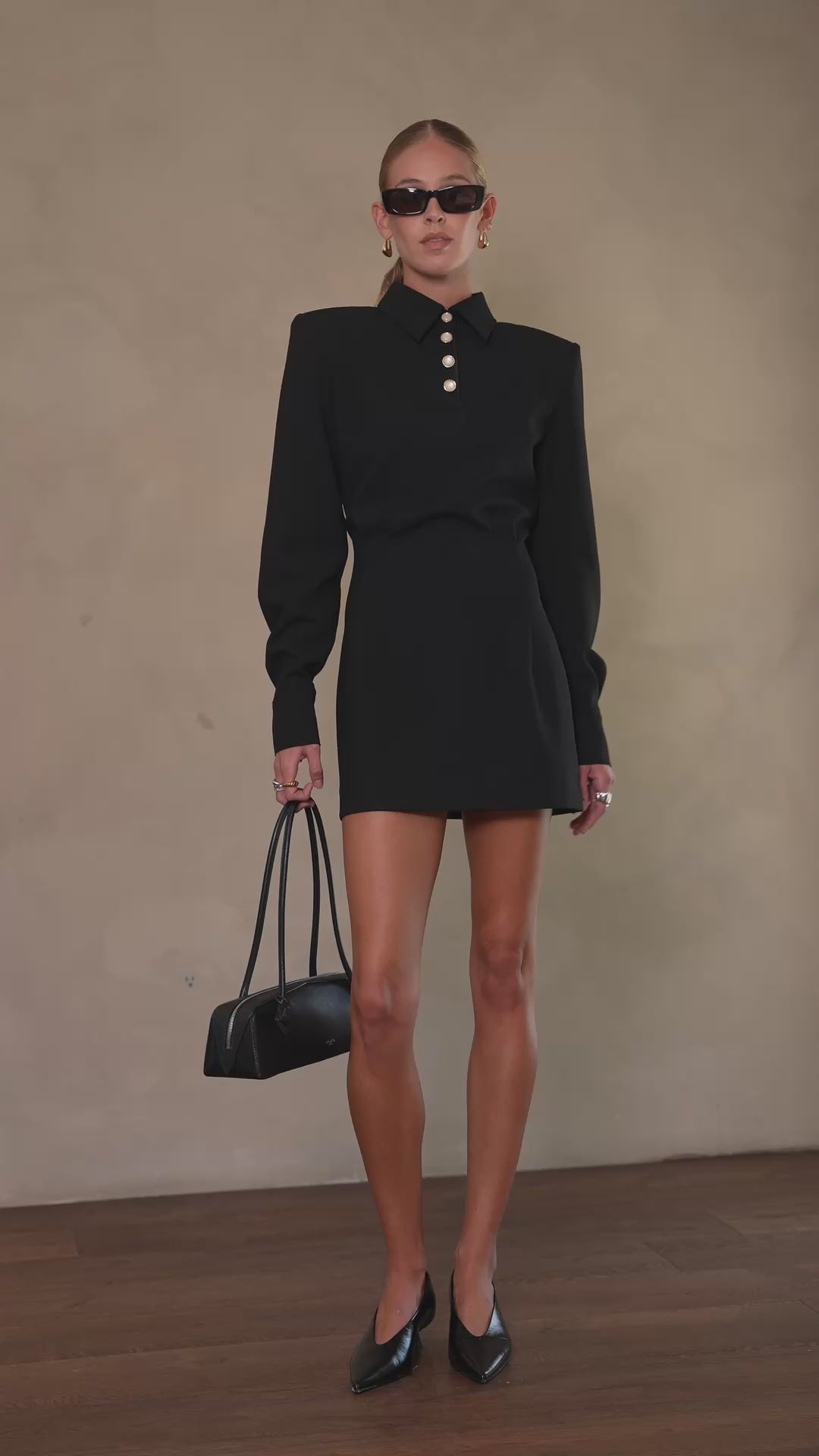 The Polo Dress introduces a refined take on a timeless silhouette. Featuring a buttoned collar and sleek polo snaps, it’s defined by padded shoulders and a darted waist that create a sculpted, feminine shape. Designed to balance structure and ease—it looks sharp, feels effortless, and flatters from every angle.